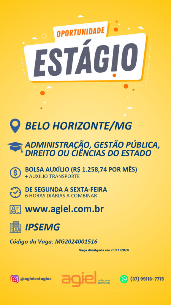 Segue o link com todas as informações sobre o processo seletivo: https://www.agiel.com.br/estudante/vagas/?codigo=MG2024001516