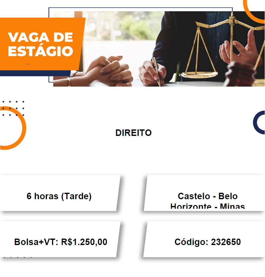 Estágio (NPJ) : 08h00 às 12h00 e 13h00 às 17h00 3409-8642 npj@direito.ufmg.br