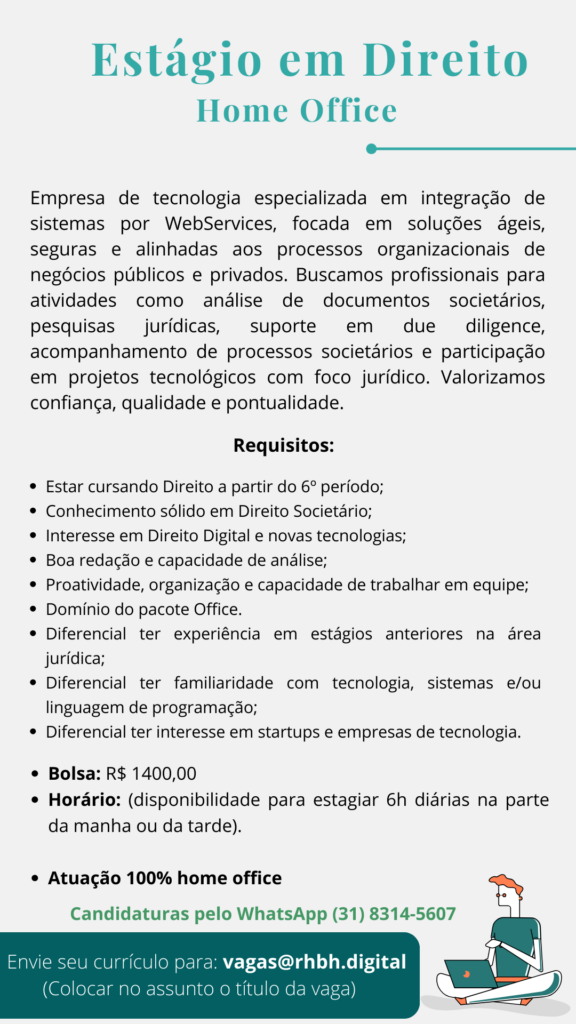 Acompanhar o desenvolvimento de projetos relacionados à tecnologia e inovação, com foco no aspecto jurídico;