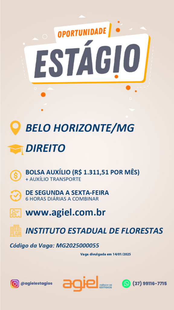 Segue o link com todas as informações sobre o processo seletivo: https://www.agiel.com.br/estudante/vagas/?codigo=MG2025000055