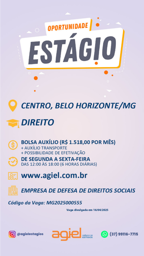 Segue o link com todas as informações sobre o processo seletivo: https://www.agiel.com.br/estudante/vagas/?codigo=MG2025000555