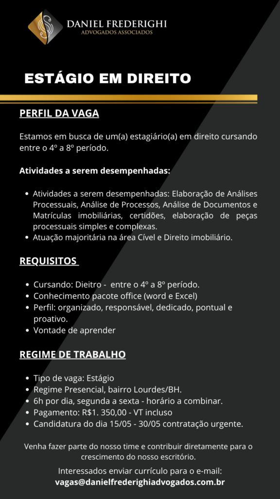 Estágio (NPJ) : 08h00 às 12h00 e 13h00 às 17h00 3409-8642 npj@direito.ufmg.br