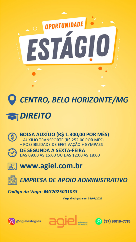 Segue o link com todas as informações sobre o processo seletivo: https://www.agiel.com.br/estudante/vagas/?codigo=MG2025001033