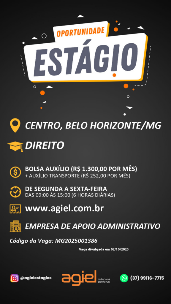Segue o link com todas as informações sobre o processo seletivo: https://www.agiel.com.br/estudante/vagas/?codigo=MG2025001386