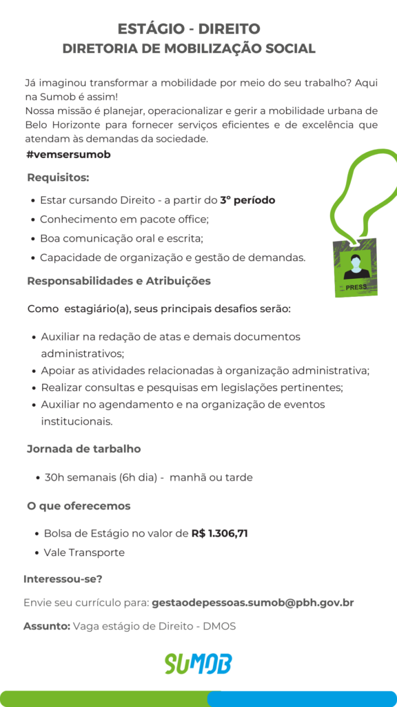 Estágio (NPJ) : 08h00 às 12h00 e 13h00 às 17h00 3409-8642 npj@direito.ufmg.br
