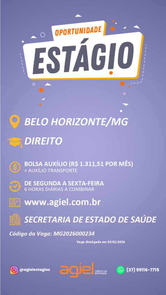 Segue o link com todas as informações sobre o processo seletivo: https://www.agiel.com.br/estudante/vagas/?codigo=MG2026000234